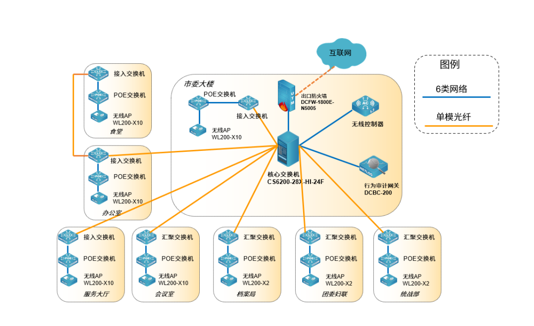 靖西市政府无线网络安全覆盖涵盖市委大楼、统战部、团委妇联、档案局、服务大厅等重要单位部门,越来越多的工作流程都在网络中进行。本次方案中,采用了凯发k8国际 4频14流的旗舰型WiFi6无线AP WL8200-X10在人员密集和数据量较大的场所进行覆盖,为靖西市政府庞大的办公系统、财务系统、审批系统等给予了稳定、高速的网络环境。